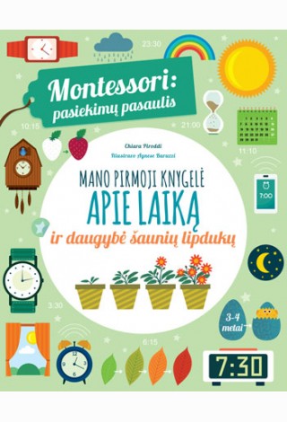 Montessori: pasiekimų pasaulis. Mano pirmoji knygelė apie laiką ir daugybė šaunių lipdukų