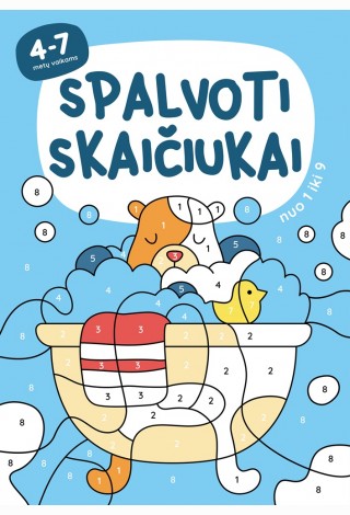 Spalvoti skaičiukai nuo 1 iki 9. Spalvinimo knygelė