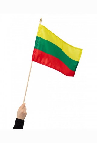 Lietuvos valstybės vėliavėlė iš sintetinio audinio 45 x 30 cm, su mediniu koteliu 70 cm