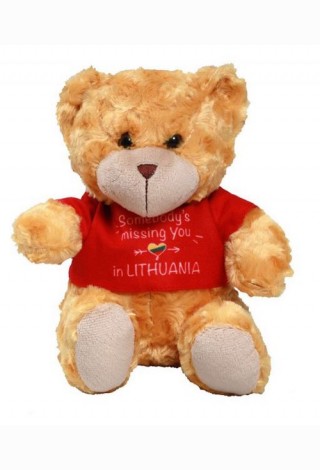 Pliušinis žaislas meškutis su marškinėliais užrašas Somebody s missing you in Lithuania, 20cm