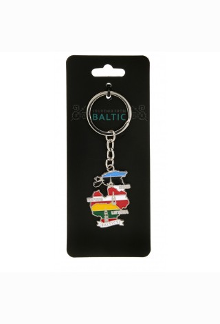 Pakabukas raktams Baltijos šalių kontūrai, 29 x 43 mm, pagamintas iš metalo.