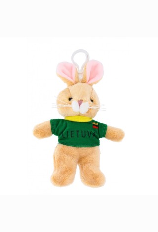 Pliušinis žaislas triušis su žaliais sirgalių marškinėliais, 14 cm