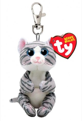 Pliušinis raktų pakabukas MITZI - grey tabby cat clip