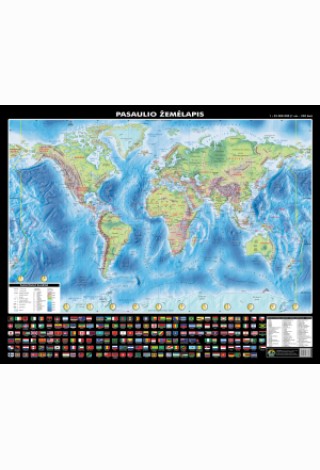 Pasaulio gamtinis ir politinis žemėlapis. 73x60 cm, laminuotas